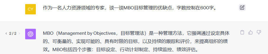 MBO强调目标的设定,它要求目标必须是具体的、可衡量的、实现可能的、具有时限的。这可以让员工清楚地知道自己的职责和预期的结果,提高工作的方向性和效率。