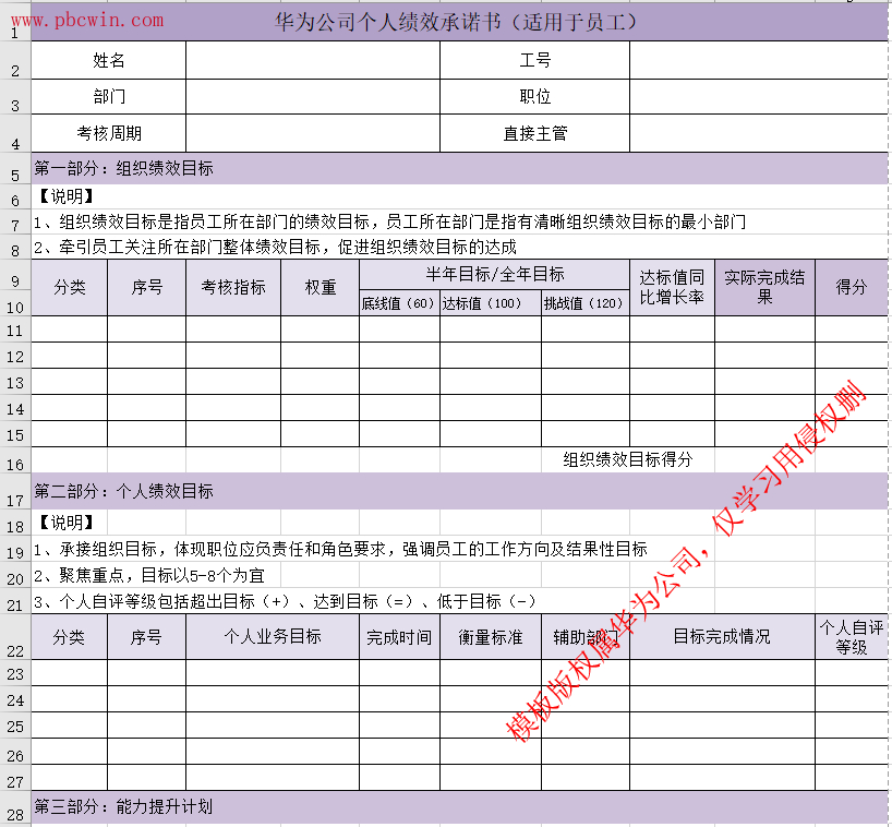 WET模板指的是PBC的模板由Win、Execute、Team三个部分组成,这三个部分也是三个承诺:Win赢的承诺,Execute执行的承诺,Team团队的承诺。
