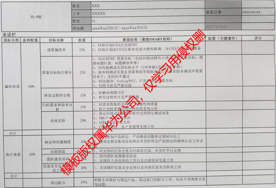首先是赢的承诺,也即结果目标承诺,承诺做什么,做到什么程度。员工承诺在考核期内所要达成的绩效结果目标,以支持部门或所在项目组目标的实现。